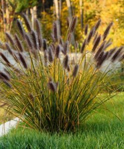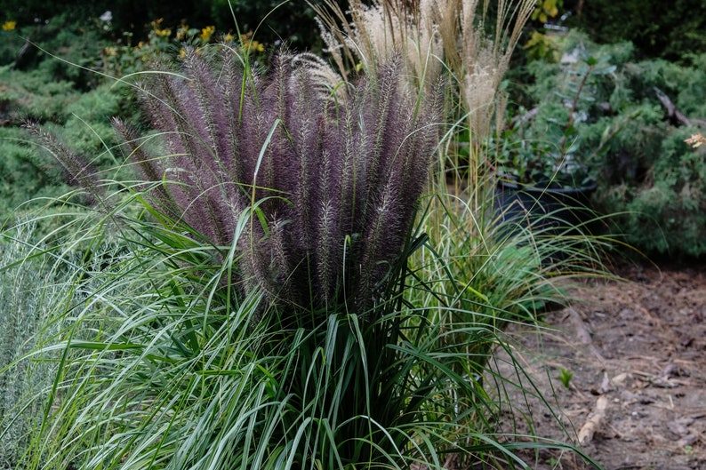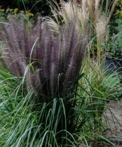 The Dwarf BLACK FOUNTAIN GRASS (Pennisetum Alopecuroides var. Viridescens) is a hardy ornamental grass that adds a striking touch to any garden. With its deep purple to black plumes, this grass will create a stunning visual contrast. Ideal for those looking to enhance their garden aesthetics.