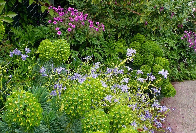 Euphorbia Mediterranean Spurge is a remarkable perennial flower that brings both beauty and resilience to your garden. This hardy plant thrives in USDA zones 7-10, making it an ideal choice for various climates. Its drought-resistant nature ensures that once established, it requires minimal watering, promoting a low-maintenance gardening experience.