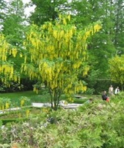 The Golden Rain Tree (Koelreuteria Paniculata) is a stunning addition to any garden, known for its vibrant yellow flowers that bloom from mid-spring to early fall. This fast-growing tree can reach a height of 40 feet, making it a striking focal point in your landscape.