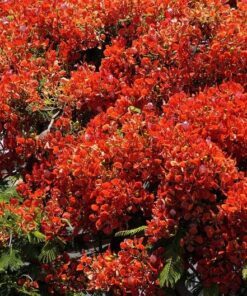 The Royal Poinciana Tree, scientifically known as Delonix Regia, is a tropical beauty renowned for its striking red flowers. This tree flourishes in hardiness zones 10 to 12 and can reach heights of 20 to 40 feet. Ideal for gardens, it creates a stunning visual impact with its vibrant blooms and lush foliage.