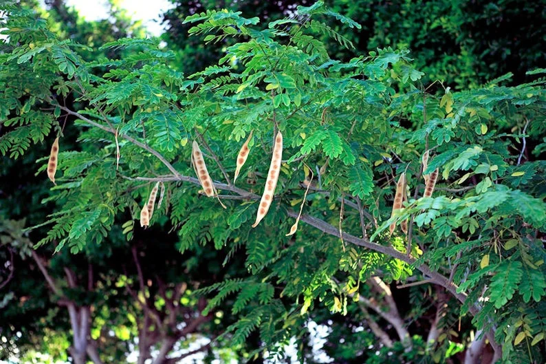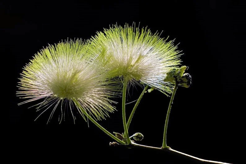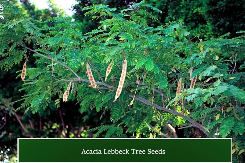 The Lebbeck Mimosa Tree (Albizia lebbeck) is a fast-growing deciduous tree that adds elegance to any garden. With its smooth trunk and arching branches, this stunning tree showcases vibrant fluffy white flowers that bloom in abundance, resembling soft silk puffs. These unique blooms are followed by distinctive pods that create a gentle rattling sound in the breeze.