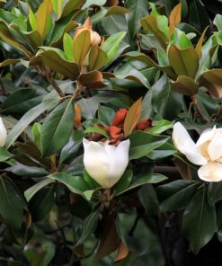 These trees not only provide ornamental value with their striking white flowers but also produce showy reddish-pink seed clusters in the fall. The evergreen leaves are dark green with a unique reddish-brown underside, adding year-round interest. Ideal for USDA zones 6-10, the Southern Magnolia thrives in various environments.