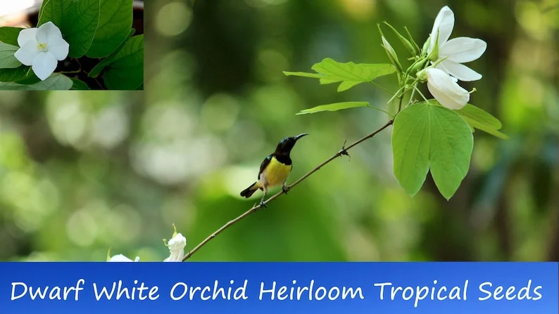 - How do I plant the Dwarf White Orchid Tree seeds? Plant in well-drained soil with adequate sunlight; germination takes 2-4 weeks.