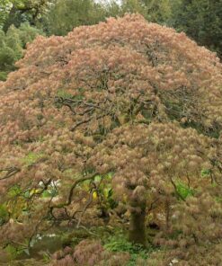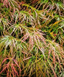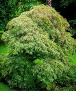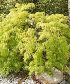 The Weeping Laceleaf Maple (Acer Palmatum Dissectum) is a stunning addition to any garden. Known for its delicate, cut-leaf foliage, this tree offers a spectacular display of color throughout the seasons. In spring, the leaves emerge in vibrant green, which transitions to beautiful shades of yellow, gold, bronze, scarlet, red, and purple in the fall.
