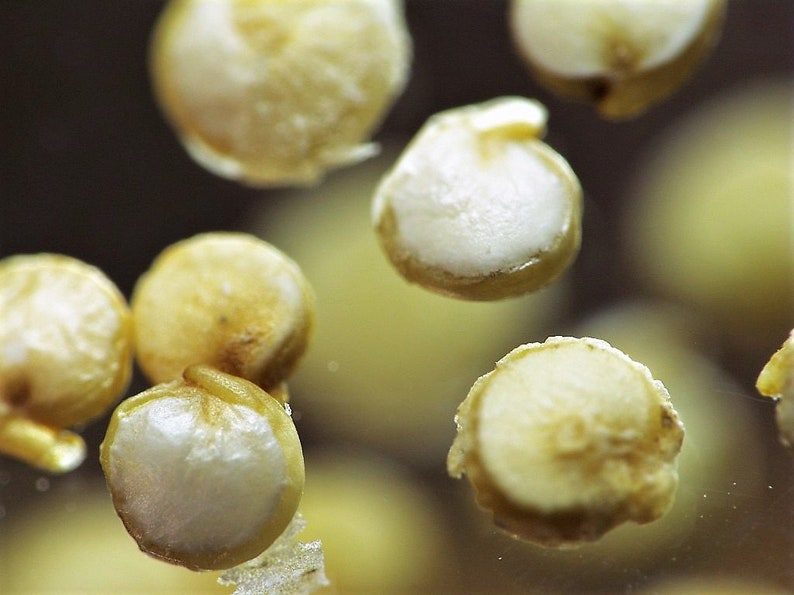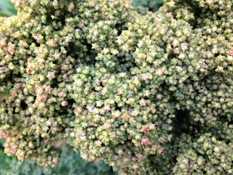 Peppermint Quinoa, scientifically known as Chenopodium Quinoa, is a unique addition to any garden. This annual plant grows to a height of 5 to 7 feet and features stunning white and green panicles adorned with white seeds. With an expected harvest time of 100 days, this plant is perfect for those looking to cultivate their own grains.