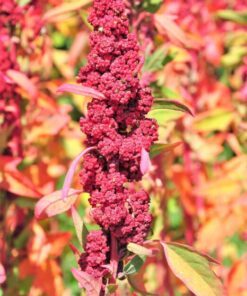 Organic Red Head Quinoa, scientifically known as Chenopodium Quinoa, features stunning bright pink and red panicles with white seeds. This beautiful grain not only adds color to your garden but is also a nutritious addition to your meals.