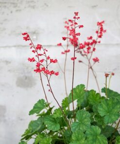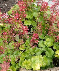 The Heuchera Splendens, commonly known as Coral Bells, is a remarkable addition to any garden. These plants produce large, showy red flowers that bloom from June to August, attracting pollinators such as bees and butterflies. With a height of approximately 10 inches, they are perfect for both garden beds and container gardening.