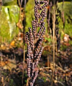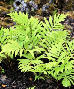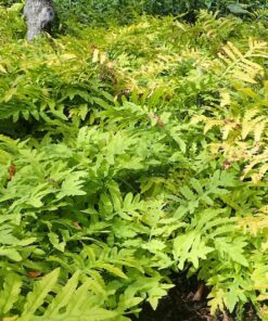 This fern produces stunning red fiddleheads in spring, which mature into bright yellow-green fronds. The dark brown sporangia add unique visual interest, perfect for fresh and dried floral arrangements. Ideal as ground cover, it thrives in various habitats, including swamps and woodland edges.