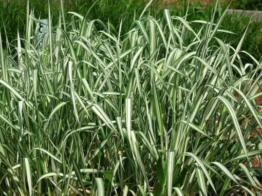 Ribbon Grass, also known as Reed Canary Grass or Phalaris Arundinacea, is a stunning ornamental grass that brings vibrant color to any landscape. This plant features unique light green and white striped leaves that create a striking visual effect in gardens.
