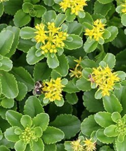 With evergreen foliage that maintains its glossy green appearance year-round, Sedum Yellow Stonecrop adds seasonal interest as its leaves transform into a pinkish-red hue in colder months. The dried flower stalks persist through winter, providing additional texture and visual interest.