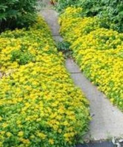 Growing up to 8 inches tall, Sedum kamschaticum ‘Yellow’ is perfect for covering large areas while requiring minimal care. It is ideal for various garden settings, including rock gardens, paths, and erosion control on hillsides. Once established, this hardy plant is highly drought-tolerant and thrives in full sun or partial shade.