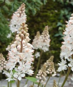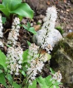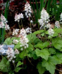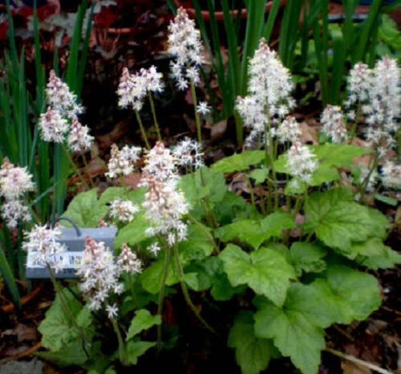 Heartleaf Foamflower plants grow to a height of 6 to 12 inches and should be spaced 6 to 9 inches apart. Ensure they receive adequate moisture without overwatering.