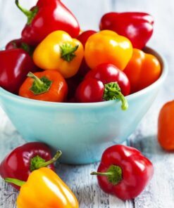 The 20 Organic Red Mini Bell Pepper seeds are an exceptional choice for gardeners looking to cultivate a sweet and mild flavor in their dishes. These miniature capsicum annuum plants grow to a height of 24 – 30 inches and require a spacing of 18 – 24 inches. With just 55 days to harvest, you can enjoy your peppers sooner than traditional varieties.