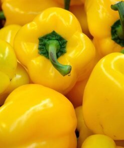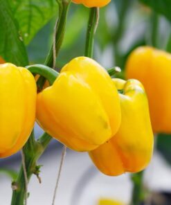 Organic Yellow Mini Bell Peppers, scientifically known as Capsicum Annuum, offer a delightful sweet mild flavor in a compact form. These vegetables grow to a height of 24 – 30 inches and thrive in sunny environments. They are perfect for gardeners with limited space, making them ideal for container gardening.