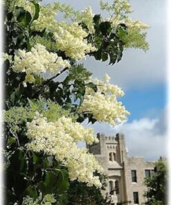 The White Tree Lilac (Syringa Pekinensis) is a stunning addition to any garden, known for its creamy white flowers and delightful fragrance. These flowers bloom in May – June, attracting hummingbirds, bees, and butterflies, making it a perfect choice for pollinator gardens.