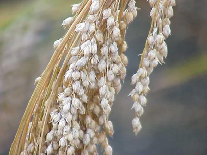 Proso Millet seeds (Panicum Miliaceum), commonly known as white millet, offer a versatile crop that thrives in challenging conditions. This heirloom variety is perfect for producing birdseed, livestock feed, or a gluten-free grain alternative. The plants grow to a height of 36-48 inches, making them suitable for various gardens.