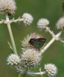 Rattlesnake Master (Eryngium Yuccifolium) is a stunning flower that thrives in USDA zones 4 to 8. Known for its unique sword-shaped leaves resembling those of a Yucca, this plant is not only visually appealing but also serves a historical purpose as a remedy for snake bites. The white blooms that appear in summer are a favorite among bees, butterflies, and birds, making it a fantastic choice for any garden.