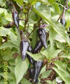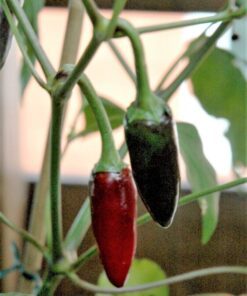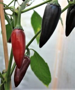 The BLACK HUNGARIAN PEPPER (Capsicum Annuum) is an exciting variety that transforms from green to black and finally to deep red. This plant not only provides a mildly hot flavor but also adds vibrant colors to your garden with its purple veined leaves and striking purple flowers.