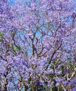 The Blue Jacaranda (Jacaranda Mimosifolia) is a stunning addition to any garden. Known for its bright green fern-like leaves and beautiful lavender blue flowers, this tree can reach heights up to 50 feet. Ideal for hardiness zones 9 to 11, it flourishes in sunny conditions.
