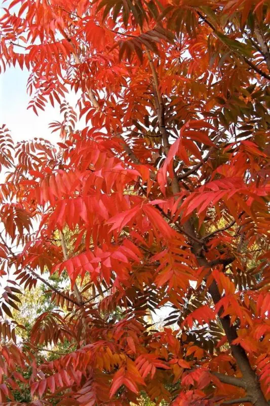 The Chinese Pistachio (Pistacia Chinensis) is a remarkable tree known for its stunning fall foliage that transforms into vibrant shades of yellow, orange, and red. This hardy tree thrives in USDA zones 6-9 and can reach heights of 25 to 35 feet, making it a great choice for landscaping and shade.