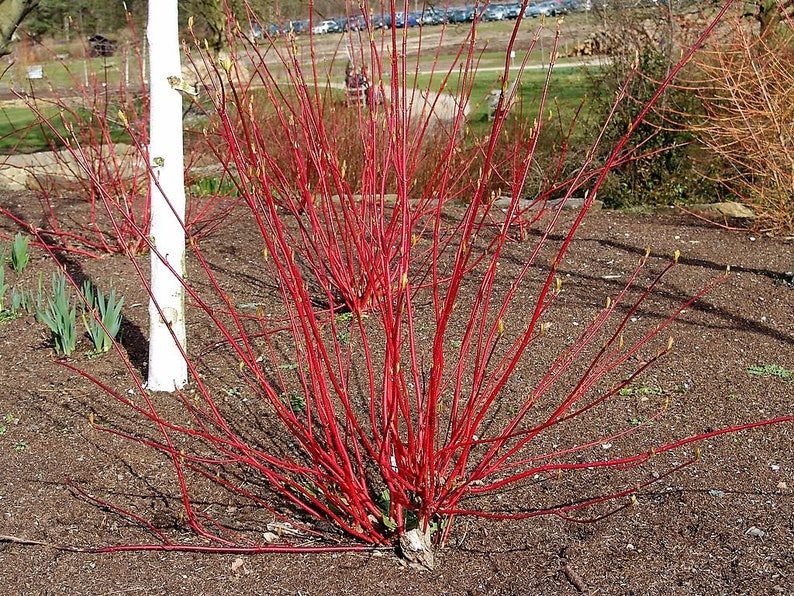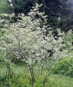 The Fire & Ice Dogwood (Cornus Alba) is a striking shrub or small tree known for its stunning red bark and beautiful white flowers. This ornamental plant thrives in hardiness zones 2 to 7, making it versatile for various climates. With a height of 4 to 6 feet and a similar spacing requirement, it makes an ideal addition to your landscape.
