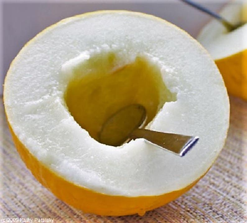 The Kolkhoznitsa Melon, also known as Collective Farm Woman, is a delightful heirloom variety of Cucumis Melo. This Russian melon is cherished for its fragrant, creamy white flesh and golden yellow-orange skin. Ideal for northern climates, it matures quickly and offers delicious melons weighing between 1-2 pounds.