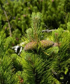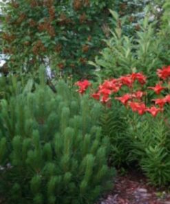 The Mugo Pine, also known as Pinus Mugo Pumilio, is a remarkable dwarf evergreen shrub perfect for various gardens. It features dark green needles that provide a lush appearance year-round. This plant is resilient, flourishing in poor, rocky, dry, or windy conditions, making it an excellent choice for gardeners looking for low-maintenance greenery.