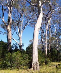 The Red Forest Gum Tree (Eucalyptus Tereticornis) is a stunning addition to any garden. Native to Eastern Australia, this evergreen tree features a straight trunk and branches that provide a lovely canopy. The white flowers bloom in mid-spring, attracting bees, birds, and butterflies, making it a vibrant habitat for wildlife.