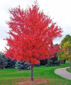 The Scarlet CAROLINA RED MAPLE (Acer Rubrum) is a fast-growing tree known for its stunning fall foliage. With vibrant shades of red and yellowish orange, it can reach heights of up to 100 feet, making it an excellent choice for shade in larger landscapes.
