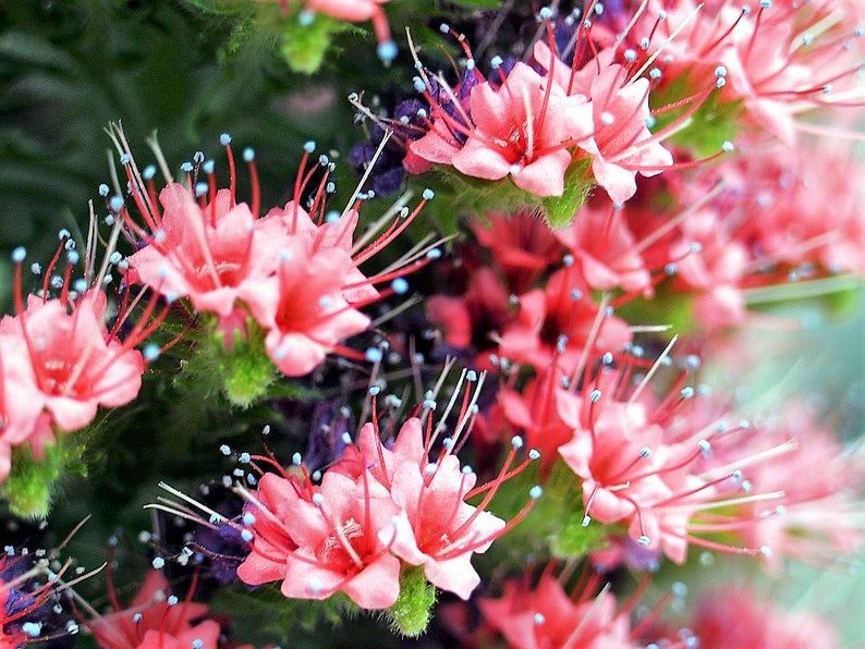The 25 TOWER OF JEWELS Red Bugloss Echium Wildpretii seeds are a unique addition to any garden. This stunning biennial plant is known for its impressive height, reaching up to 10 feet, and vibrant ruby-red flowers that bloom in summer. The Tower of Jewels not only beautifies your space but also attracts beneficial pollinators like bees, butterflies, and hummingbirds.