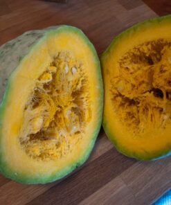 Expect a bountiful harvest in approximately 110 days. The large, teardrop-shaped fruits can weigh between 15 – 30 lbs and have a hard shell, making them perfect for long-term storage of up to 6 months.
