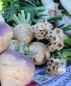 The Laurentian Rutabaga (Brassica napus var. napobrassica) is a delightful addition to your garden. Known for its creamy color with a reddish-purple top, this vegetable is not only visually appealing but also offers a mild flavor perfect for various culinary uses. Planting 3000 seeds allows for a bountiful harvest of rutabagas that can reach sizes of 4-6 inches.