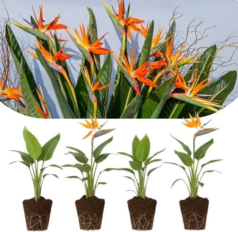 This offering includes a collection of four individual bird of paradise live plant specimens, ensuring you receive multiple opportunities to cultivate these magnificent tropical flowering plants. Each plant measures approximately 4-7 inches tall from the base of the root ball to the top of the foliage, providing a healthy starting size ready for growth. These are young, well-rooted plants, ideal for transplanting into slightly larger containers or directly into a garden bed in suitable climates. Expect a moderate growth rate, with mature plants potentially reaching several feet in height and width over time, depending on growing conditions and environment. The exact pot size shipped may vary, but the plants are packaged to ensure their roots are protected and moist during transit. With proper bird of paradise care, these plants will develop into impressive, bloom-producing specimens.