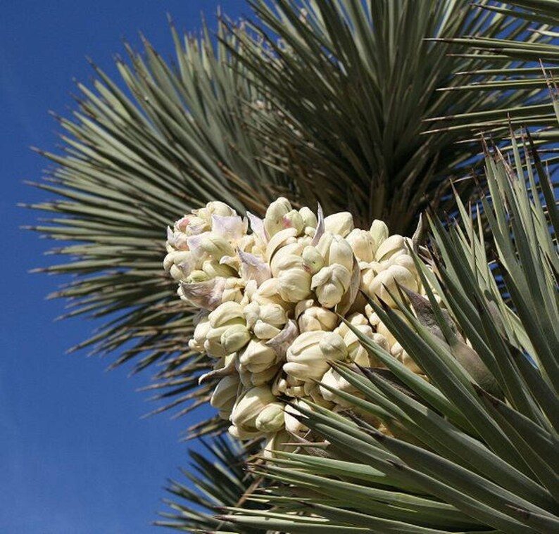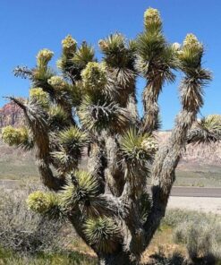 Joshua Trees are not only visually appealing but also sustainable. They can live up to 150 years and provide habitat for desert wildlife. The tree produces large flower clusters that attract pollinators, ensuring a vibrant ecosystem in your garden.