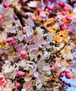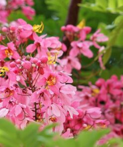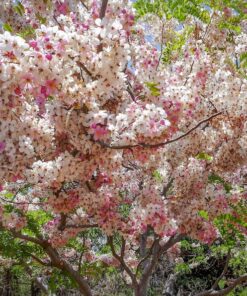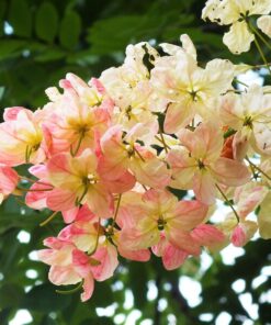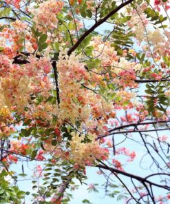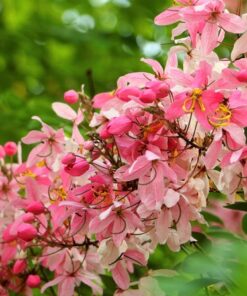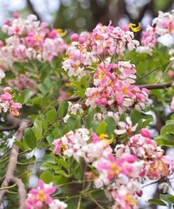 The Pink Shower Tree, also known as Rainbow Shower Tree or Apple Blossom Tree, is a stunning addition to any garden. The scientific name is Cassia Javanica, and it produces beautiful flowers in light and dark pink, white, and yellow. This tree can reach a height of 25 to 35 feet, making it an impressive focal point.