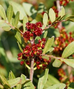 The Pistachio Nut Tree (Pistacia Vera) is a stunning addition to any garden, producing not only beautiful red flowers but also delicious, edible nuts. This tree thrives in sunny conditions, making it perfect for gardens in USDA zones 7-11.