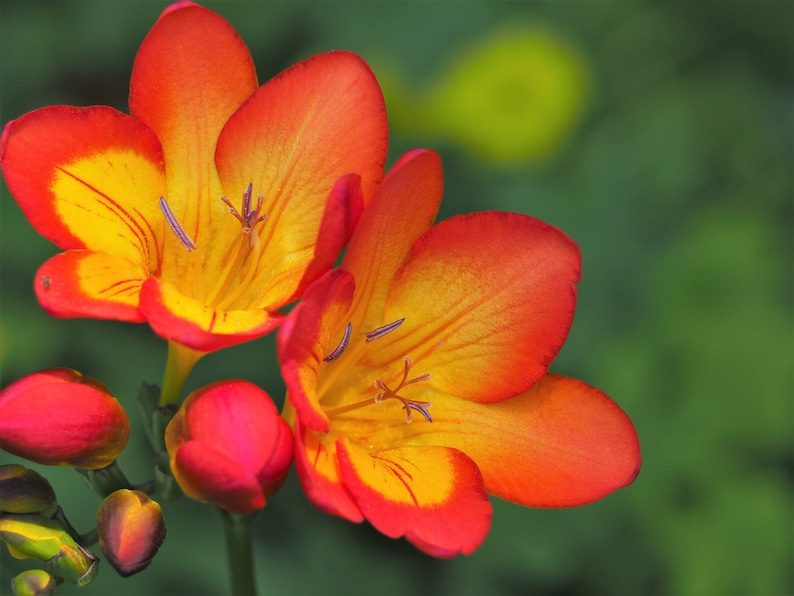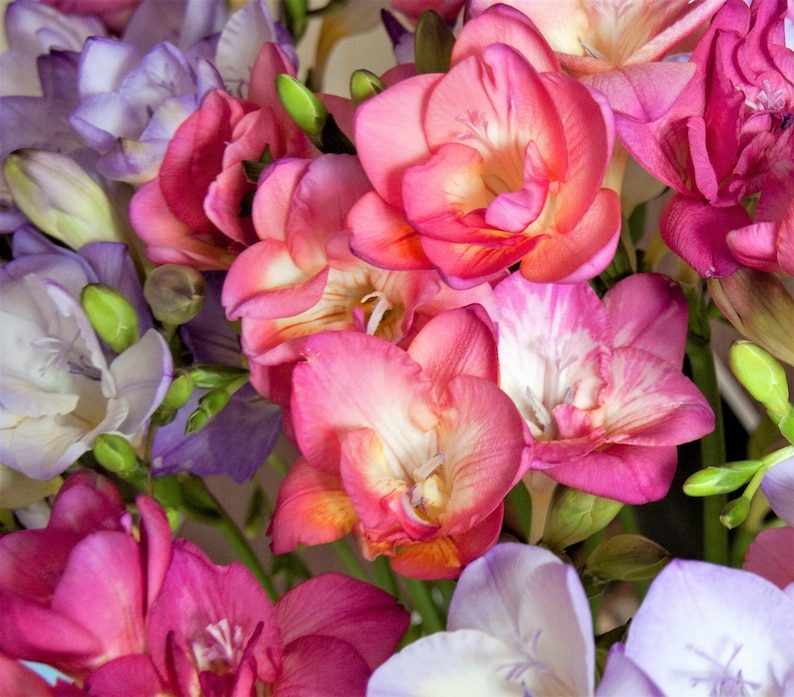 These freesias bloom beautifully from spring to summer, providing a delightful fragrance reminiscent of berries and citrus. With their trumpet-shaped flowers capable of producing up to ten blossoms per stalk, they are perfect for floral arrangements and as cut flowers with a long vase life. They symbolize friendship, thoughtfulness, and grace.