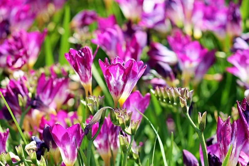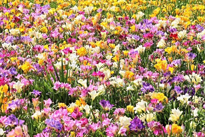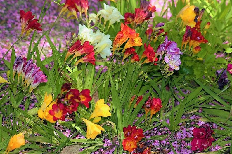 5 ROYAL CHAMPION Mix FREESIA Flower Seeds are an excellent choice for gardeners looking to add vibrant colors and captivating scents to their outdoor spaces. These seeds yield stunning flowers in assorted shades, including reddish orange, pink, lilac, purple, blue, white, and yellow.