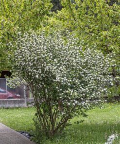 Black Chokeberry (Aronia Melanocarpa) is a stunning ornamental shrub native to North America. Known for its striking white flowers, which bloom in mid-spring, this plant also produces delicious purplish-black berries in the summer and fall. With a height range of 4 to 8 feet, it is ideal for garden borders and natural landscaping.