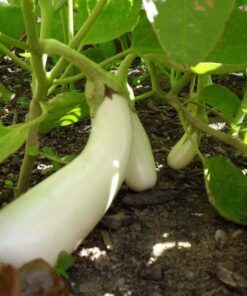 The Casper White Eggplant (Solanum melongena) is a unique heirloom variety renowned for its striking white skin and tender flesh. With a mild, less bitter taste, this eggplant stands out in both flavor and appearance. Each plant reaches a height of 2 to 3 feet, making it an excellent choice for home gardens.