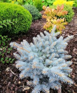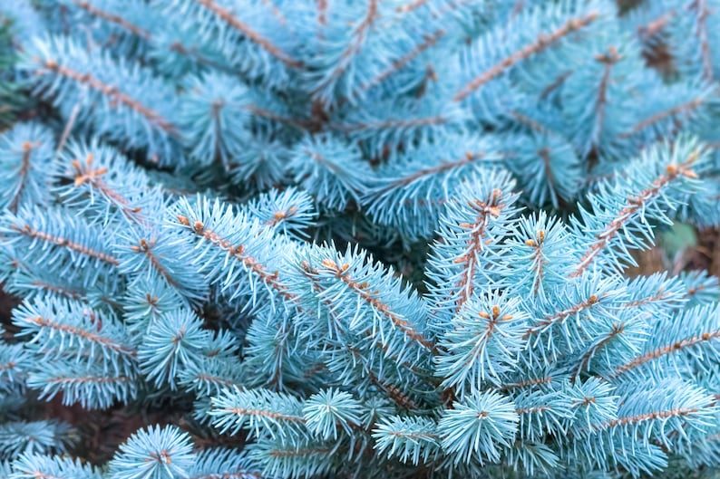 The Colorado Blue Spruce, scientifically known as Picea Pungens Glauca, is celebrated for its beautiful silvery-blue foliage. This evergreen is ideal for various climates and serves as an ornamental addition to any landscape.