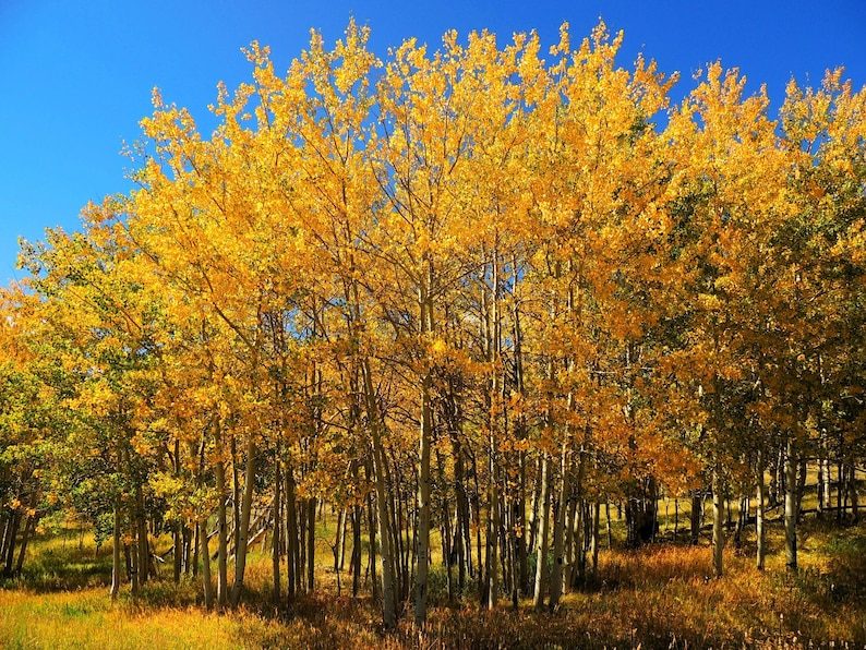 The Quaking Aspen, scientifically known as Populus Tremuloides, is a remarkable tree that brings a burst of color to your landscape. With its stunning golden-yellow fall foliage and striking white to light tan bark, this tree is not just a plant but a statement in your garden.