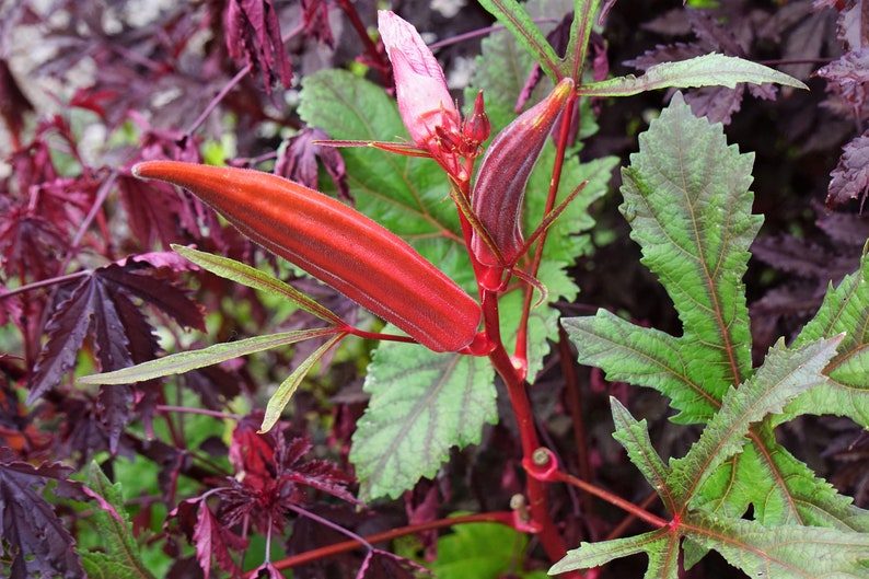 The Jing Orange Okra, scientifically known as Abelmoschus Esculentus, is a stunning addition to any garden. With its unique yellow flowers featuring red eyes and striking reddish-orange pods, this heirloom variety is not only beautiful but also delicious. It thrives in full sun and is perfect for summer blooms.