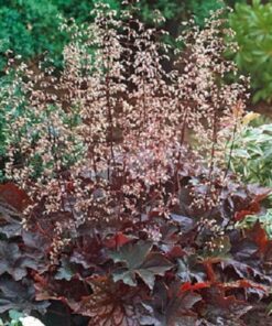 Palace Purple Heuchera, known scientifically as Heuchera Micrantha ‘Palace Purple’, is a stunning addition to any garden. With its unique purple-bronze foliage and delicate cream flowers, this plant adds vibrant color throughout the blooming period from June to July. Ideal for hardiness zones 4 to 8, it thrives in various conditions.