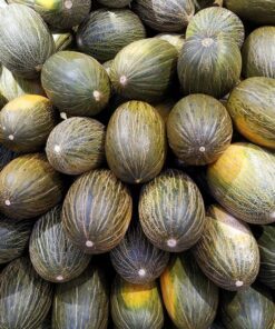 Although the vines can grow long, they can be trained vertically on trellises, saving valuable garden space and making them adaptable to various setups. Enjoy the sweet, juicy flesh of the Piel de Sapo Melon, ideal for fresh eating, fruit salads, or desserts.