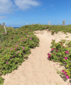 The Pink Beach Rose, also known as Rosa Rugosa, is a stunning addition to any garden. These flowers bloom from May to July, providing vibrant pink colors that brighten up your landscape. With a height of 4 to 6 feet, they are perfect for creating natural hedges or enhancing coastal gardens.