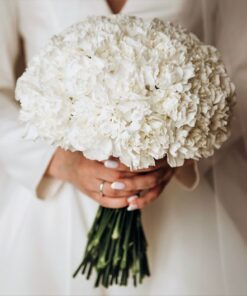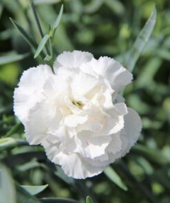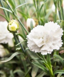 White Carnation, scientifically known as Dianthus Caryophyllus Grenadin White, is a stunning flower that blooms from late spring to mid-summer. These flowers grow to a height of 24 inches and thrive in hardiness zones 5 to 10. With their lush, double blooms, they are perfect for creating beautiful cut or dried floral arrangements.