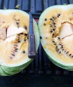 The Yellow Crimson Watermelon is a unique heirloom variety known for its sweet and juicy yellow flesh. This melon, scientifically named Citrullus Lanatus, is characterized by its striped green skin and vibrant yellow interior, making it a delightful addition to any garden. With a growth height of 6 to 12 inches, these vines require a planting distance of 5 to 6 feet for optimal growth.