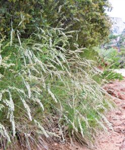 The Muttongrass, also known as Mutton Grass or Poa Fendleriana, is a native grass that flourishes in a range of environments. Its striking white-straw seedheads accented with reddish tones add beauty to any garden.