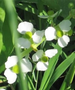 The Broadleaf Arrowhead (Sagittaria Latifolia) is an aquatic plant that features striking white flowers and arrowhead-shaped leaves. Ideal for ponds and wetlands, this plant not only beautifies your water garden but also serves as a vital food source for various wildlife, including ducks. Each plant can grow up to 24-36 inches tall, making it a stunning addition to your aquatic collection.